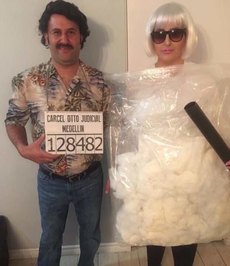 En ocasiones hemos visto disfraces de Joaquín Guzmán o Pablo Escobar, grandes líderes de cárteles narcotraficantes que han ocasionado caos en sus países al ser las cabezas de organizaciones que no sólo están relacionadas por la venta de sustancias ilícitas, sino también con otros crímenes como trata de blancas, homicidios, entre otros.
