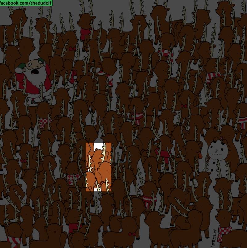 Prueba de lo anterior es este tierno acertijo navideño realizado por Dudolf, un artista noruego muy talentoso; lo que se pide para resolver el desafío de esta ocasión es únicamente encontrar al osito escondido entre los renos, pero debes apresurarte que solo tienes 7 segundos para lograr la hazaña.