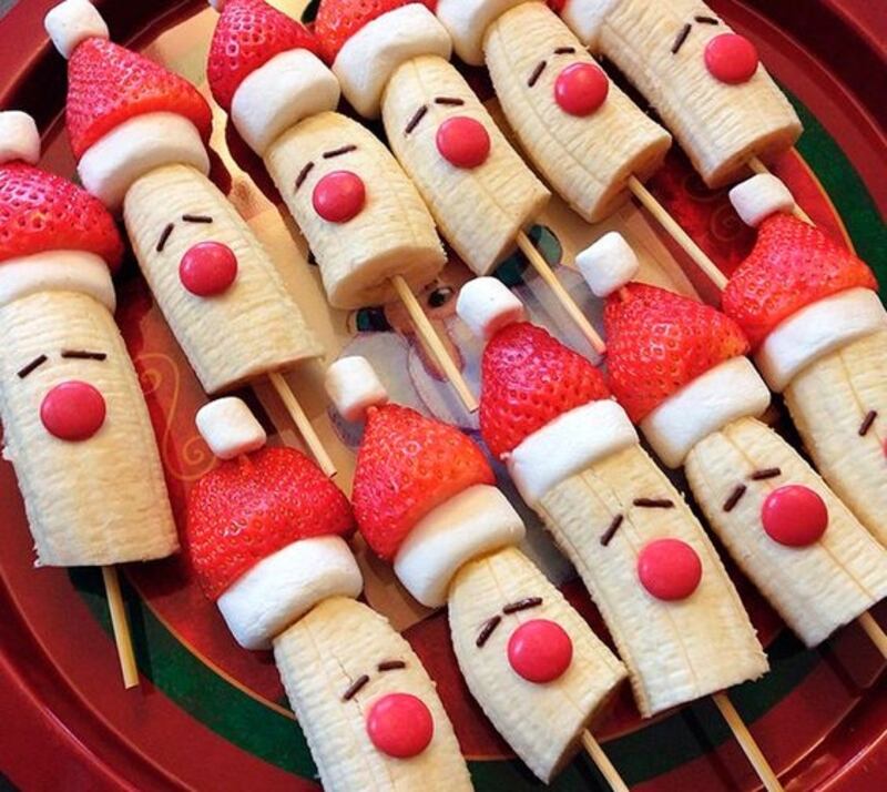 Con plátano: Este postre es fácil, pues solo necesitarás bombones, plátanos, fresas, chispitas de chocolate y una luneta.