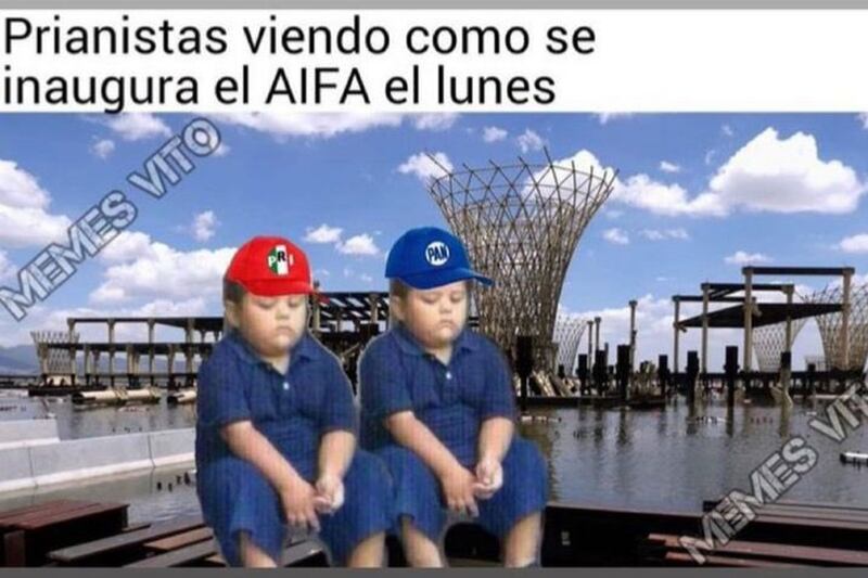 Sabemos que el contenido de redes sociales suele ser muy creativo y directo sobre alguna burla o crítica específica, esta vez del nuevo aeropuerto. Tanto miembros de la oposición como aquellos usuarios creativos que quisieron externar en internet como estaría siendo la reacción de sus oponentes en la inauguración llenaron todo de increíbles memes.
