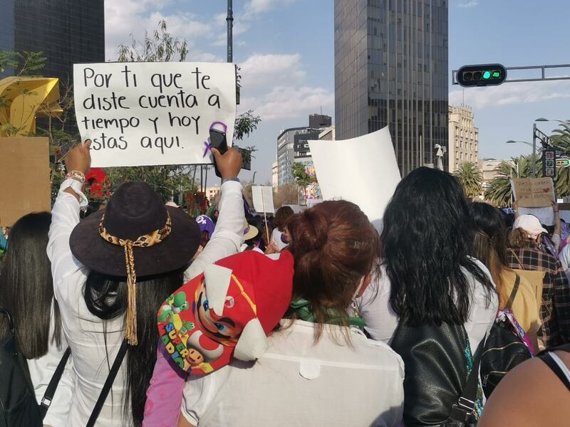 Estas se identifican con sus vestidas de color morado en su mayoría y con diferentes pancartas y consignas. Este 8 de marzo las calles de la Ciudad de México han logrado ver el poder femenino en su máxima expresión y creatividad con la voz con esta marcha que busca ser pacífica.