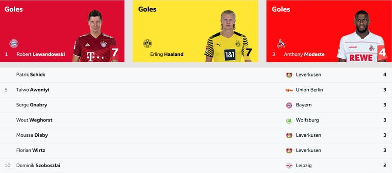 Así va la tabla goleadora de la Bundesliga 21/22