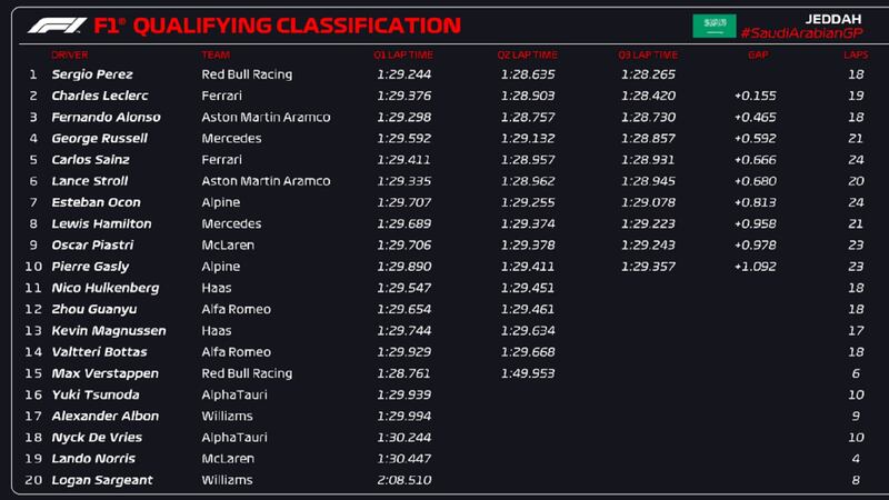 Revisa la clasificación completa del Gran Premio de Arabia Saudita: