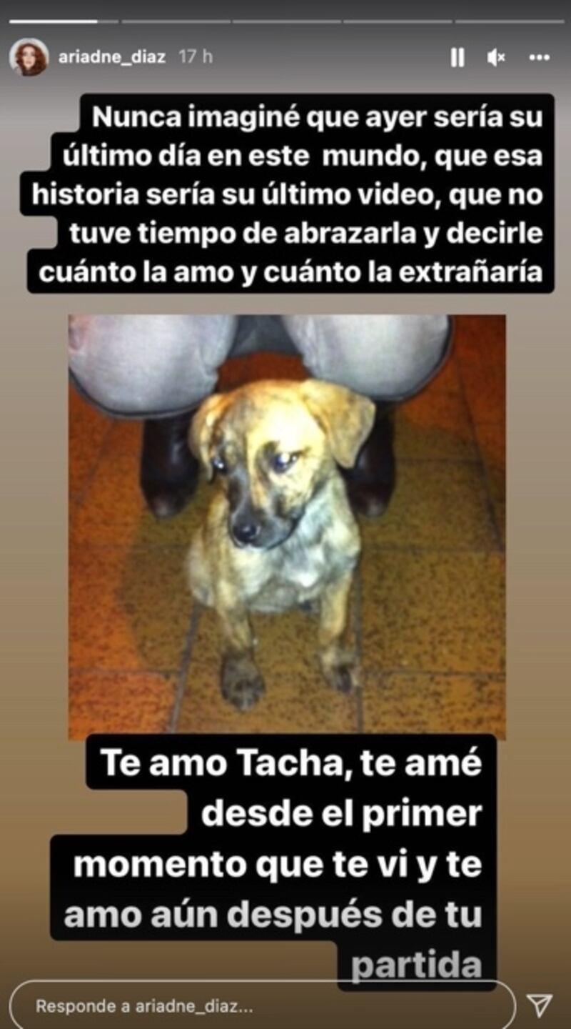 Fue a través de está red social que Ariadne Díaz compartió el luto que vive a través de fotografías en donde se ve lo unida que era a su perrita.
