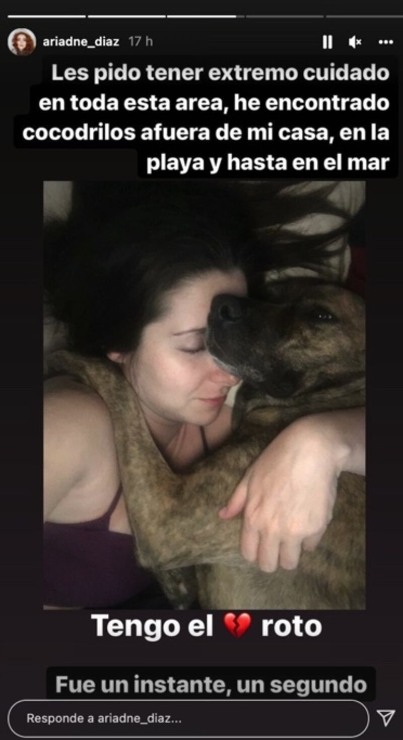 Para finalizar, Ariadne Díaz pidió a la gente tener mucho cuidado con los reptiles: "Les pido tener extremo cuidado en toda esta área. He encontrado cocodrilos afuera de mi casa, en la playa y hasta en el mar. Tengo el corazón roto. Fue un instante, un segundo", concluyo la guapa actriz.