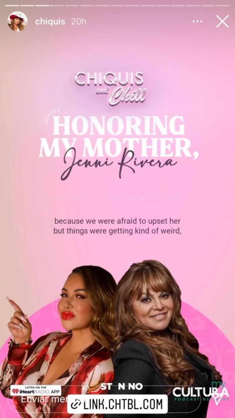 Ahora fue turno de su hija, Chiquis Rivera, quien a través de un podcast para la app de I heart Radio, decidió honrar la memoria de su madre y contar experiencias inéditas que vivió con "La mariposa del barrio".