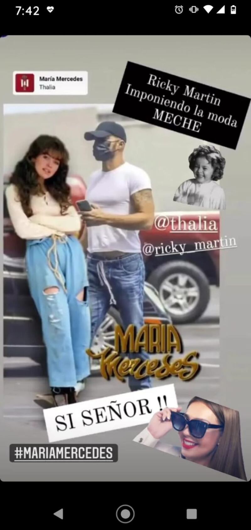La cantante Thalía compartió dos divertidos memes en los que comparan los looks de sus famosos protagónicos, de las telenovelas mexicanas consagradas como "Las Marias", con los outfits de estrellas internacionales. Pues crearon un meme de la famosa actriz Sharon Stone con "Marimar", y al cantante Ricky Martin le hicieron otro con "María Mercedes".