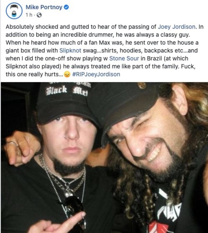 “Absolutamente deshecho al escuchar sobre el fallecimiento de Joey Jordison. Tuve la suerte de haberlo conocido a través de los años compartiendo escenarios y festejando por todo el mundo. Era un talento increíble y una persona increíble. Te extrañaré mi hermano. RIP # 1”.