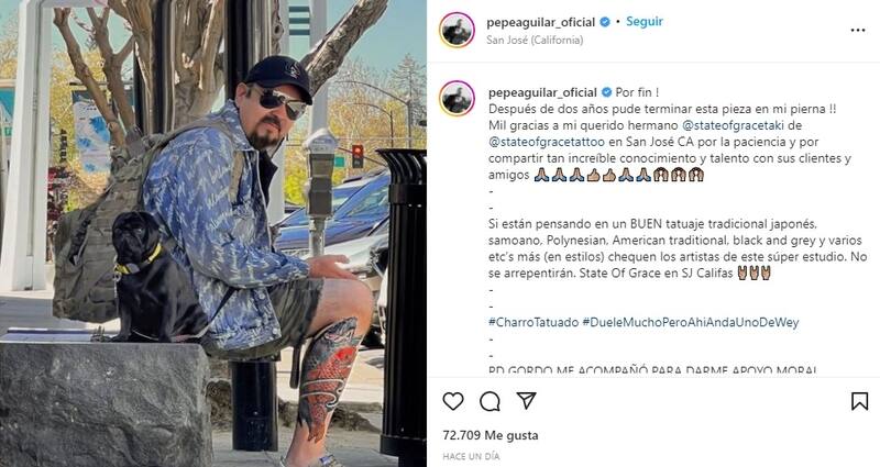"Si están pensando en un BUEN tatuaje tradicional japonés, samoano, polynesian, American traditional, black and grey y varios etcéteras más (en estilos), chequen los artistas de este súper estudio. No se arrepentirán. State Of Grace en SJ Califas", agregó Pepe Aguilar.