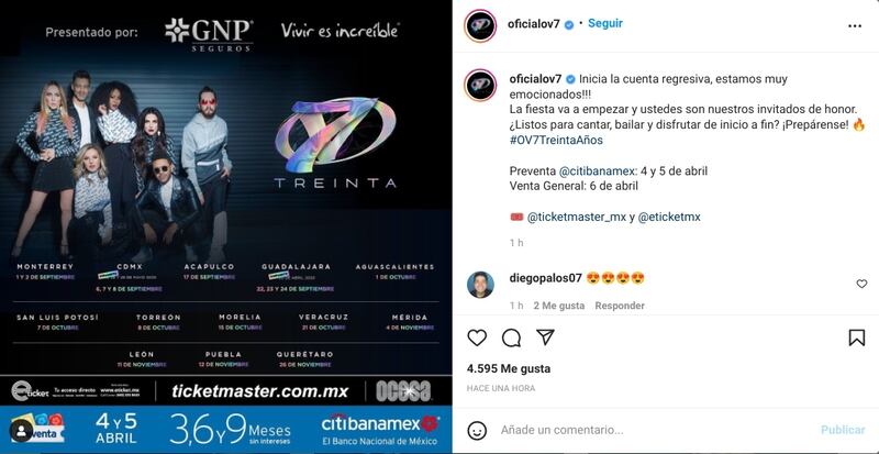 Después de una serie de polémicas y desavenencias que casi provocan que terminara antes de empezar, la gira por los 30 años de OV7 ya tiene fecha de inicio: arrancará el 1 de septiembre en el Auditorio Citibanamex de la ciudad de Monterrey, y continuará a lo largo de octubre y noviembre por varias ciudades de la República Mexicana.