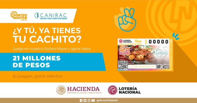 De acuerdo con la Lotería Nacional, “este sorteo otorga un premio mayor por 21 millones en tres series y una bolsa repartible de más de 66 millones de pesos”.