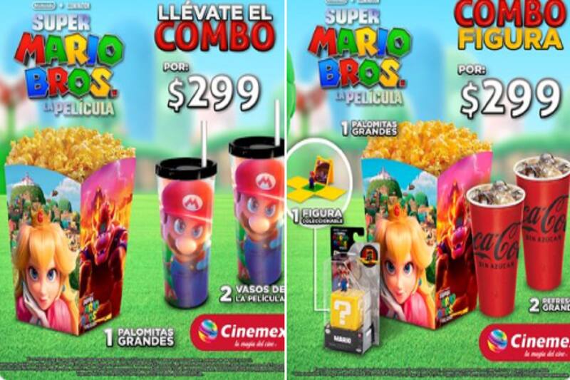 Si eres verdadero fan de Mario, Luigi y la princesa Peach estos combos coleccionables que tiene Cinemex y Cinépolis son para ti.