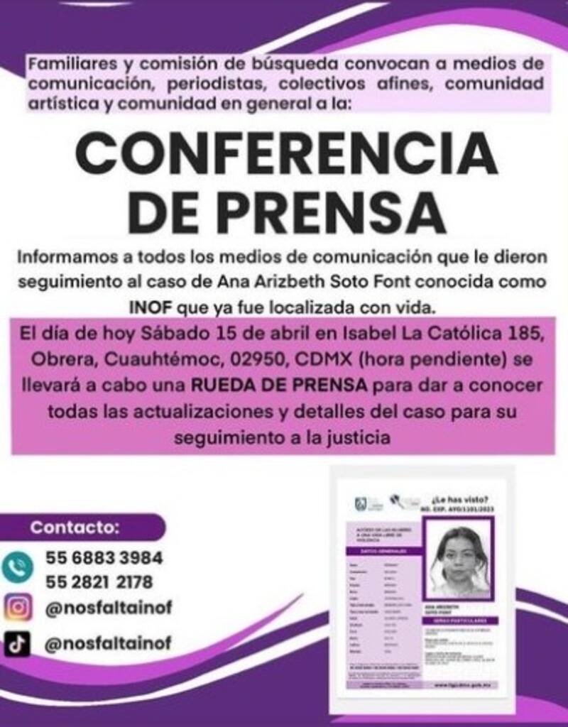 Ana Arizbeth Soto Font mejor conocida como “INOF” fue encontrada con vida en un predio abandonado de la Colonia Moctezuma.