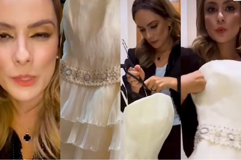 La mujer que vivió este feo momento se llama Nadia y la conductora que ofreció su vestido de novia se trata de Cristhian Lara del noticiero de canal 13, mejor conocido cómo Tv Azteca de “Hechos Meridiano”, ella lo utilizó hace 13 años atrás cuando se casó con otro conductor televisivo.