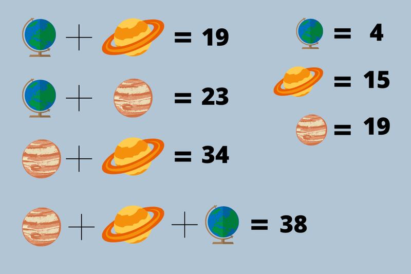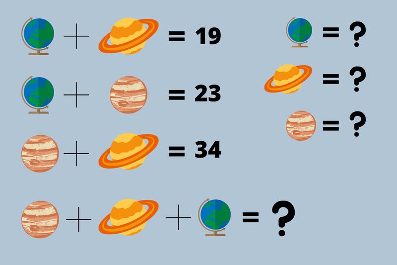 Para realizar este test no necesitas prepararte de ninguna forma, solo respirar y concentrarte para poder realizar el ejercicio de la mejor manera posible. ¿Qué valor tiene cada planeta? ¿Cuál es el resultado de la suma de ellos?