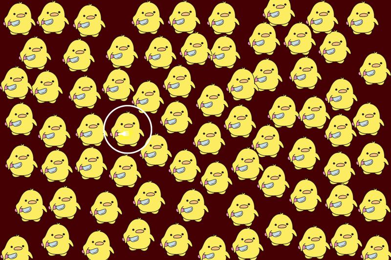 Puede que esté camuflado entre la multitud de pollitos maliciosos. Si prestas atención a los detalles, podrás descubrirlo.