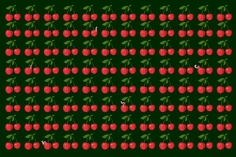 Los gusanos invasores están entre las guindas, bien escondidos, pero confiamos en que podrás encontrarlos: