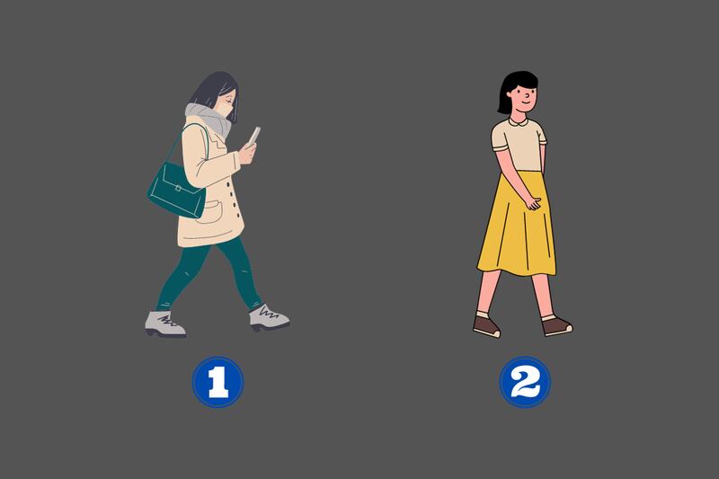 Para que tengas más certeza, te invitamos a respirar profundo y pensar en la manera en la que actúas día a día, y específicamente la forma en la que caminas. Luego mira la imagen y elige la mujer que más represente tu forma de actuar en la calle.