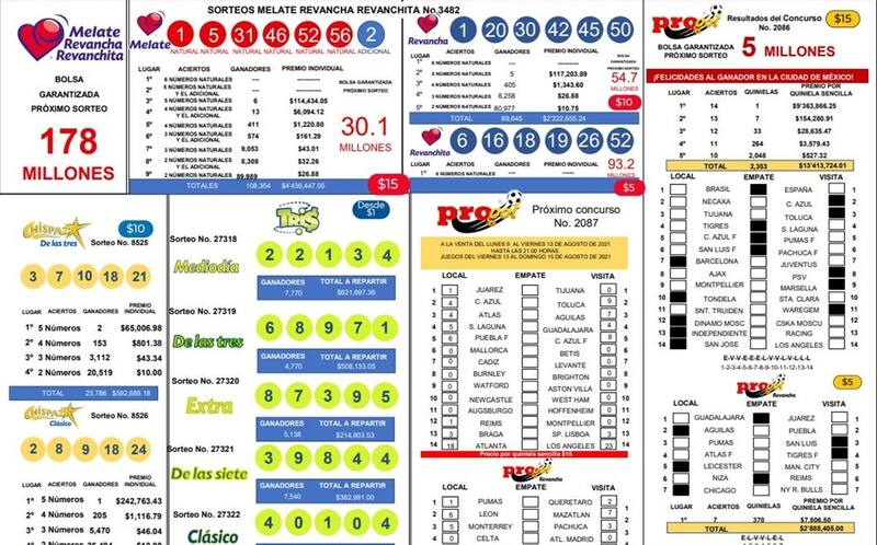 - Números ganadores de Melate: 6, 16, 18, 19, 26, 52
