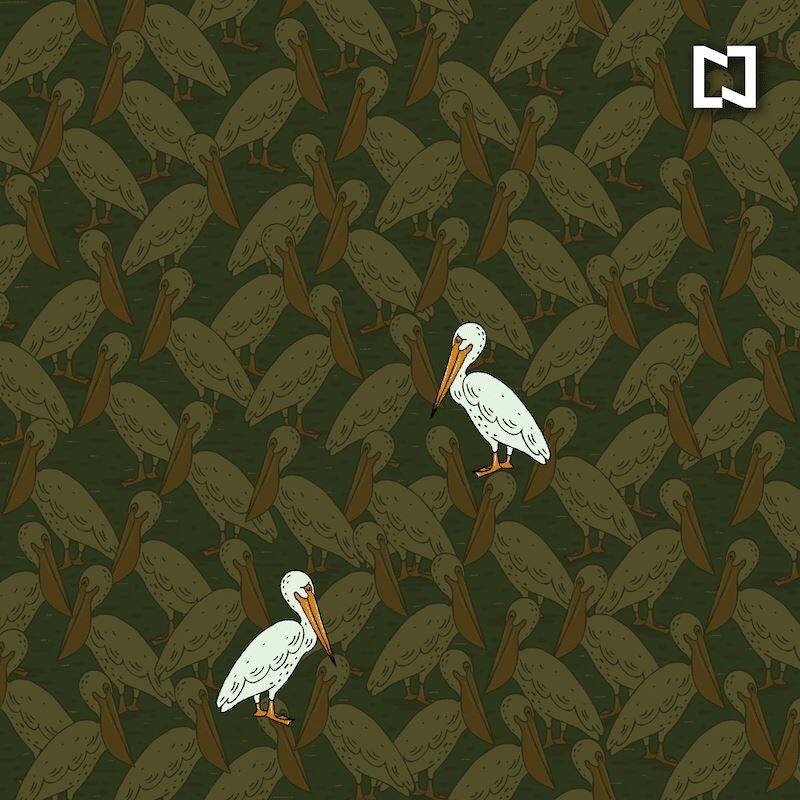 En la imagen, compartida por Noticieros Televisa, se puede observar una lámina repleta de pelícanos con el pico inflado, pero dentro de ella hay dos con el pico vacío que a simple vista se pierden. El reto visual consiste en identificar a estos dos animales diferentes  en 20 segundos. ¿Puedes hacerlo?