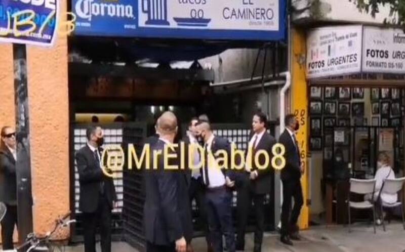La información fue dada a conocer por el reportero Jorge Becerril, quien a través de su cuenta de Twitter publicó un video en donde se aprecia a la comitiva estadounidense salir de la taquería "El Caminero", el establecimiento se ubica en la alcaldía Cuauhtémoc.