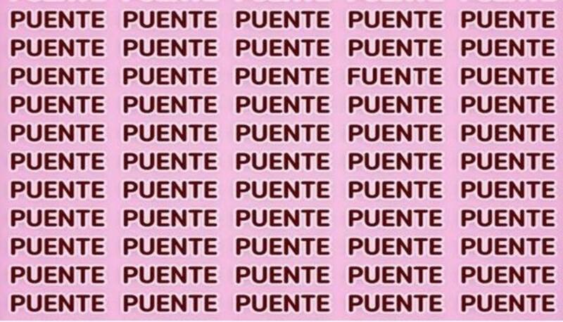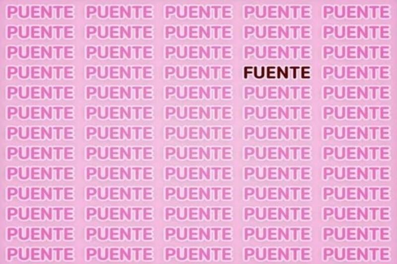 En la imagen se puede observar una lámina repleta con la palabra 'puente', que a simple vista se pierde con la palabra 'fuente'. El reto visual consiste en identificar dicha palabra en 15 segundos. ¿Puedes hacerlo?