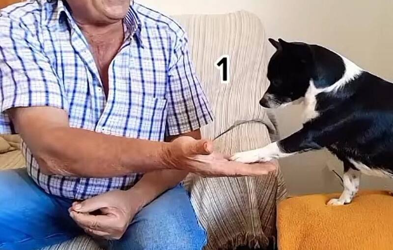 Ella señala con su patita una unidad en el momento que su dueño estira la mano, así consecutivamente para alcanzar la cantidad requerida en el resultado de problema matemático.