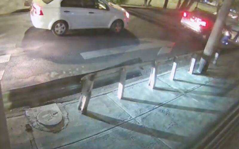 En estas imágenes captadas por las cámaras de seguridad en la calle, se observa el momento en el que un auto da una vuelta bastante pronunciada y a gran velocidad en las calles de la CDMX. Pero la mujer que iba de copiloto salió disparada porque no tría cinturón puesto y seguro de puertas cerrado.