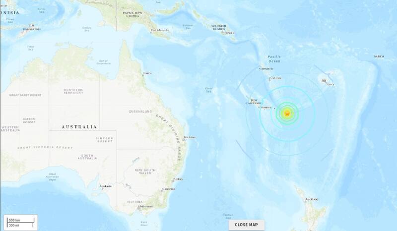 El terremoto de magnitud 7,5 sacudió el Pacífico Sur este miércoles a unos 400 km al este de Nueva Caledonia, según el USGS. La ventaja del terremoto es que ocurrió a una distancia considerable de la tierra, por lo que no existió ningún daño por temblor.