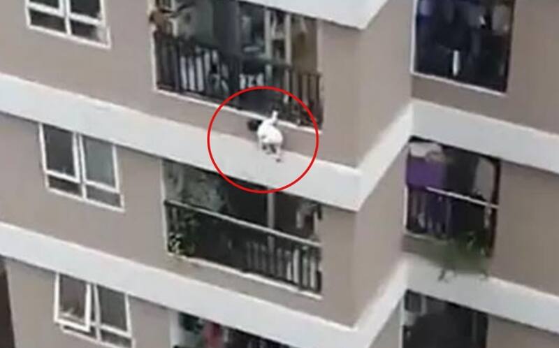 Según las imágenes publicadas por la web del periódico Tuoi Tre, la niña escaló por unos barrotes del balcón y se quedó colgada, sostenida solo de un brazo, mientras los vecinos de alrededor daban gritos de alarma para que alguien fuera a socorrerla.