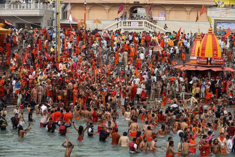 En la ciudad norteña de Haridwar, casi un millón de devotos abarrotaron las orillas del Ganges, un río que muchos hindúes consideran sagrado, para participar en el festival de cántaros o 'Kumbh Mela', que dura varios meses.