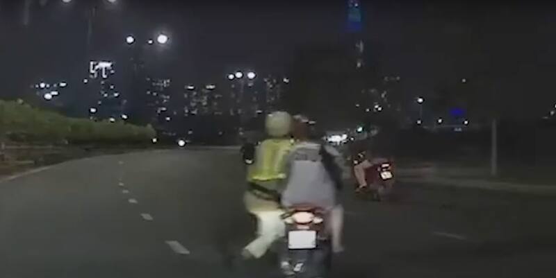 Se hizo viral en redes sociales el increíble momento en el que un valiente policía se aferró a una motocicleta que intentaba huir de una multa de tráfico.