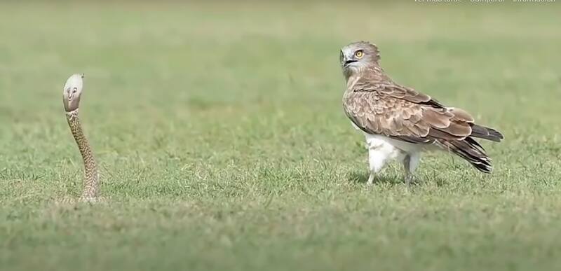 El video de una riña entre una cobra y una águila se hizo viral en redes sociales debido o lo inusual de dicho suceso.Las imágenes muestran a un valiente reptil ahuyentando a un ave después de que ella intentara cazarlo con la finalidad de alimentarse.