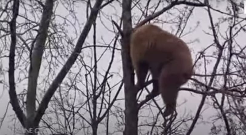 Se hizo viral el video de un enorme oso que fue captado trepando a la cima de un árbol con la intención de alcanzar un nido de pájaros.