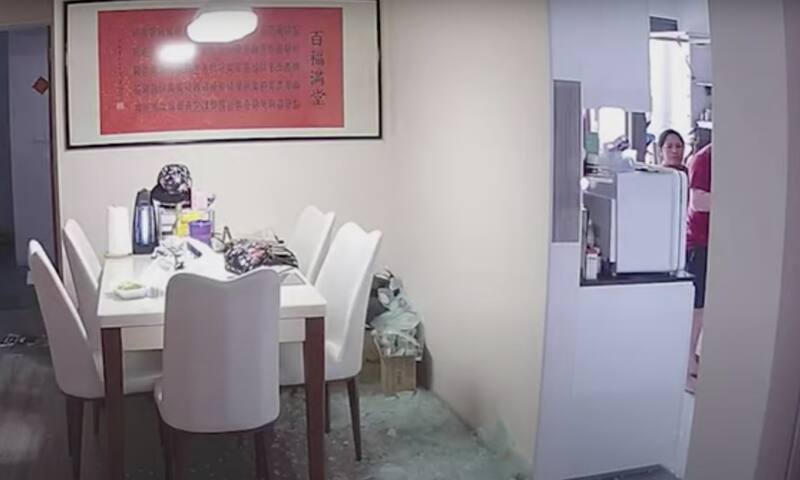 Sito Rong Feng llevaba una bolsa de la mesa del comedor a la cocina cuando la puerta se rompió por sí sola en Singapur.