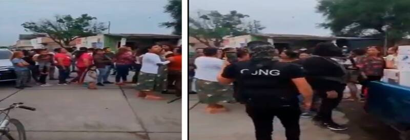 En Internet circula un video en los que se observa a algunos pobladores de los municipios de Tototlán, La Barca y Jamay, haciendo largas filas para recibir los regalos, que son resguardados por hombres y mujeres vestidos de negro, que portan armas largas.