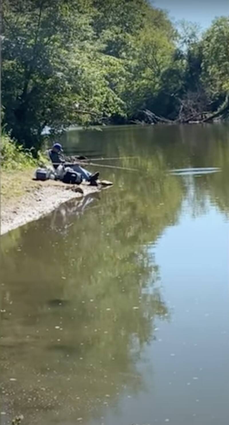 Mientras este pescador de tercera edad tomaba una siesta, dos bromistas lanzaron su caña de pescar para que tirara de su abuelo dormido y lo despertara con un susto.