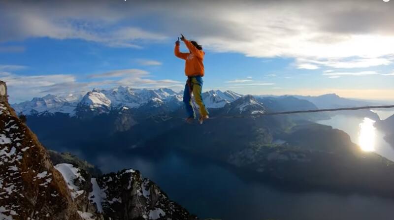 Se hizo viral un atleta de slackline que realizó trucos de " free style" en las nubes, flotando a 1500 metros sobre un lago.