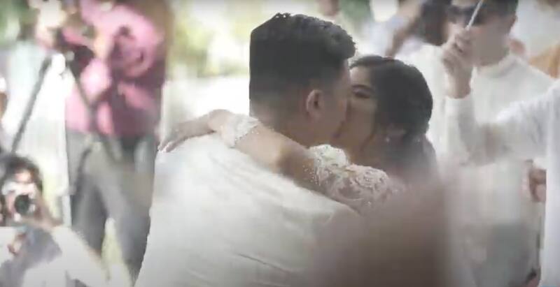 Jason Karlo Santos, de 30 años, sostuvo en sus brazos a su novia, "princesa" de 29 años, pero no pudo soportar su peso frente a la iglesia en la ciudad de Antipolo, Filipinas, Familia y amigos vitorearon a los novios mientras se iban.