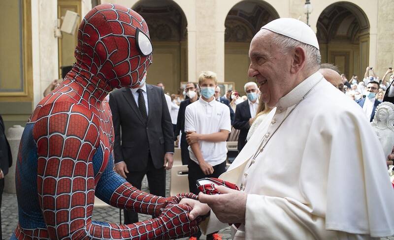 El día de hoy miércoles 23 de junio Spiderman sorprendió al Papá Francisco, en el patio de San Dámaso del Vaticano, en la audiencia general con los fieles, donde le regalo una máscara.