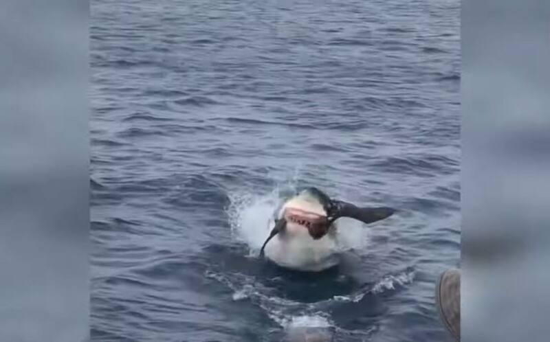 En el video se observa cómo un ave petrel se acercó sin saber que un tiburón blanco de cuatro metros acechaba la zona donde los turistas habían arrojado el cebo.