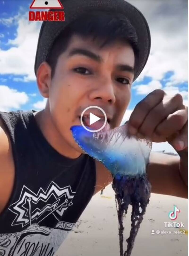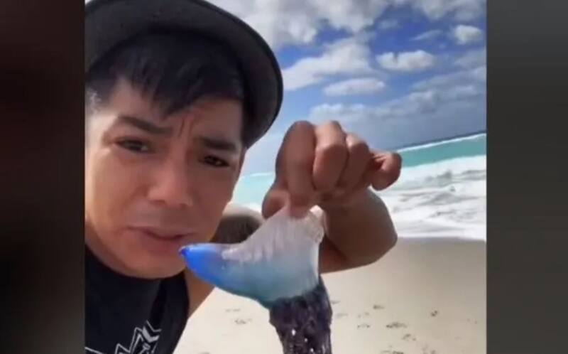 El "influencer", además de tocar con su dedo a la carabela, lamió en dos ocasiones a la medusa con el único afán de ganar seguidores, sin que supiera que se trataba de una especie sumamente peligrosa, y cuyo veneno puede ocasionar fallas cardio respiratorias.