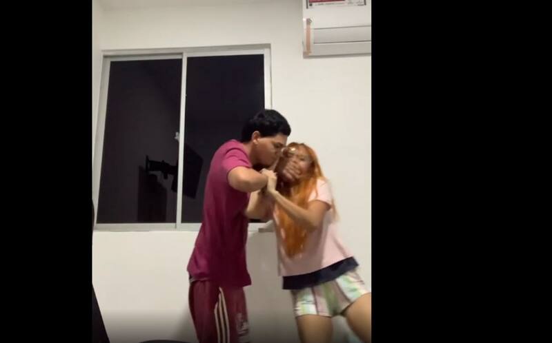 Tras varios minutos, ambos se levantan y forcejean. En la grabación se escucha cuando la mujer grita desesperadamente: "¡auxilio!". Poco después, se oye cuando es ayudada por los vecinos.