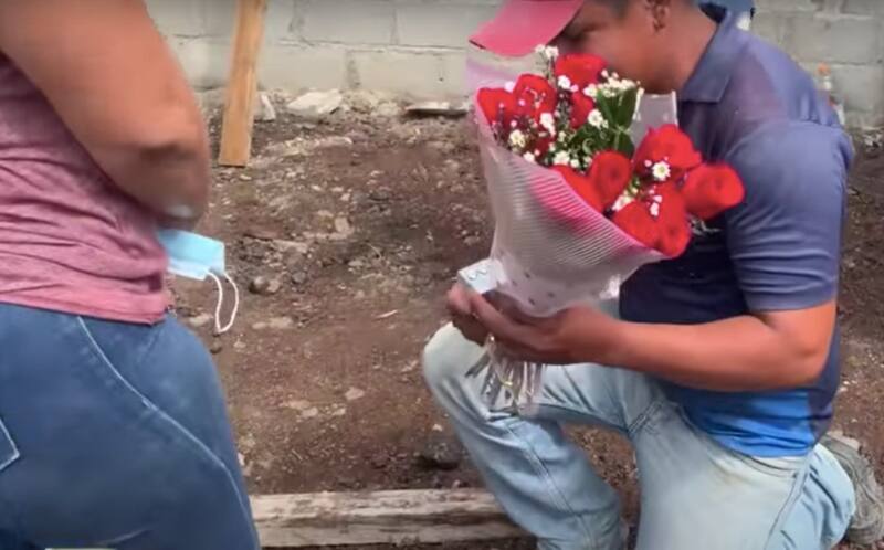 Un albañil llamado Esdras le pidió matrimonio a su novia en su lugar de trabajo. En una obra. Pero contó con el apoyo de sus familiares, amigos, y compañeros de trabajo, los cuales le ayudaron a cubrir los gastos de las flores, el mariachi y el anillo con el que sorprendió a su ahora prometida.