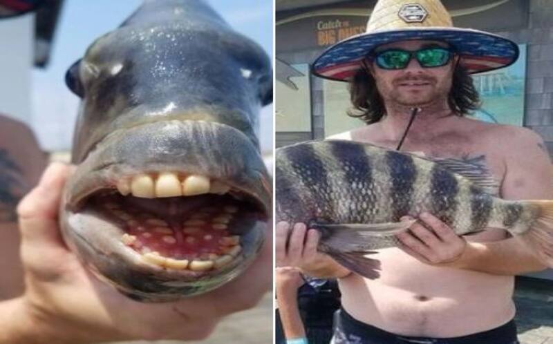 A través de su cuenta de Facebook, la casa de pesca Jennette's Pier ubicada en Carolina del Norte, Estados Unidos, publicó la imagen de un pez que parecía fuera de la realidad (pues posee unos dientes muy parecidos a los de los humanos). Esta red social compartió varias fotografías de Nathan Martin, el hombre que encontró este peculiar animal marino.