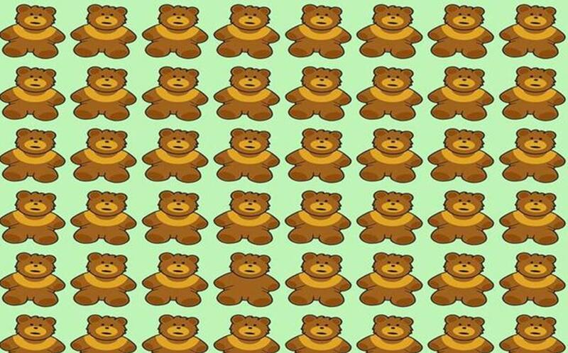 En la imagen se puede observar una lámina repleta de osos de peluche, aunque dentro de ella hay uno que a simple vista se pierde con los demás. El reto visual consiste en detectar al peluche en tan sólo 15 segundos. ¿Puedes hacerlo?