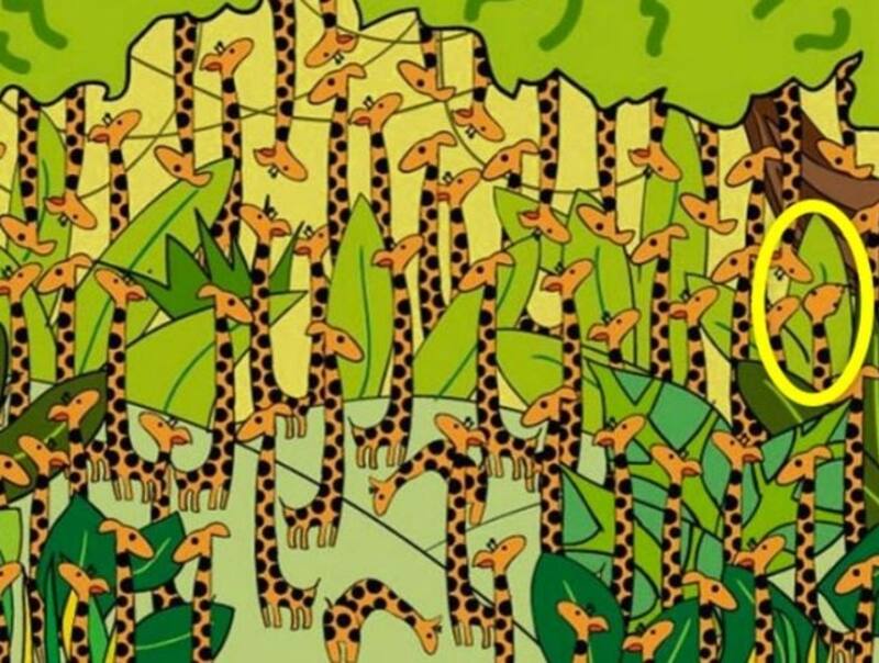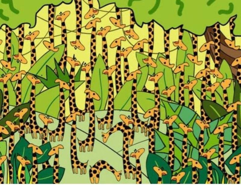 Debes encontrar una serpiente que se encuentra escondida entre todas esas jirafitas.