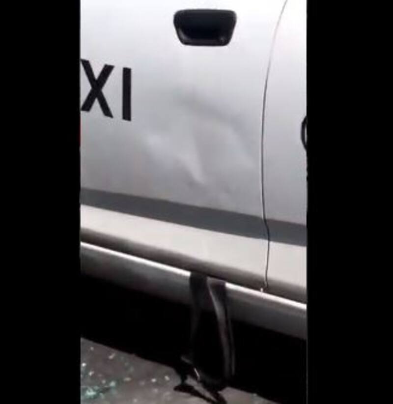 "Ya le rompieron el vidrio al pobre del taxista... Sí, con el tanque de gas la muchacha lo rompió... Es un señor grande"