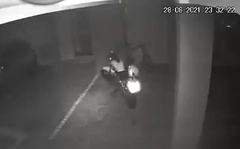 El video fue captado por las cámaras de seguridad del estacionamiento del edificio. En él se ve cómo la motocicleta se prende de la nada, da una vuelta e impacta a un auto.