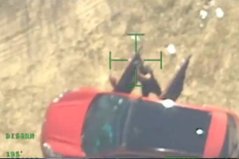 "La SUV roja. Creo que está… entre ustedes. Tienen un AK-47 y acaban de apuntarnos", dijo el piloto de la aeronave a su base de control, al tiempo de que emprendió el vuelo de huída y elevó de inmediato al helicóptero, dejando sin oportunidad al sicario.